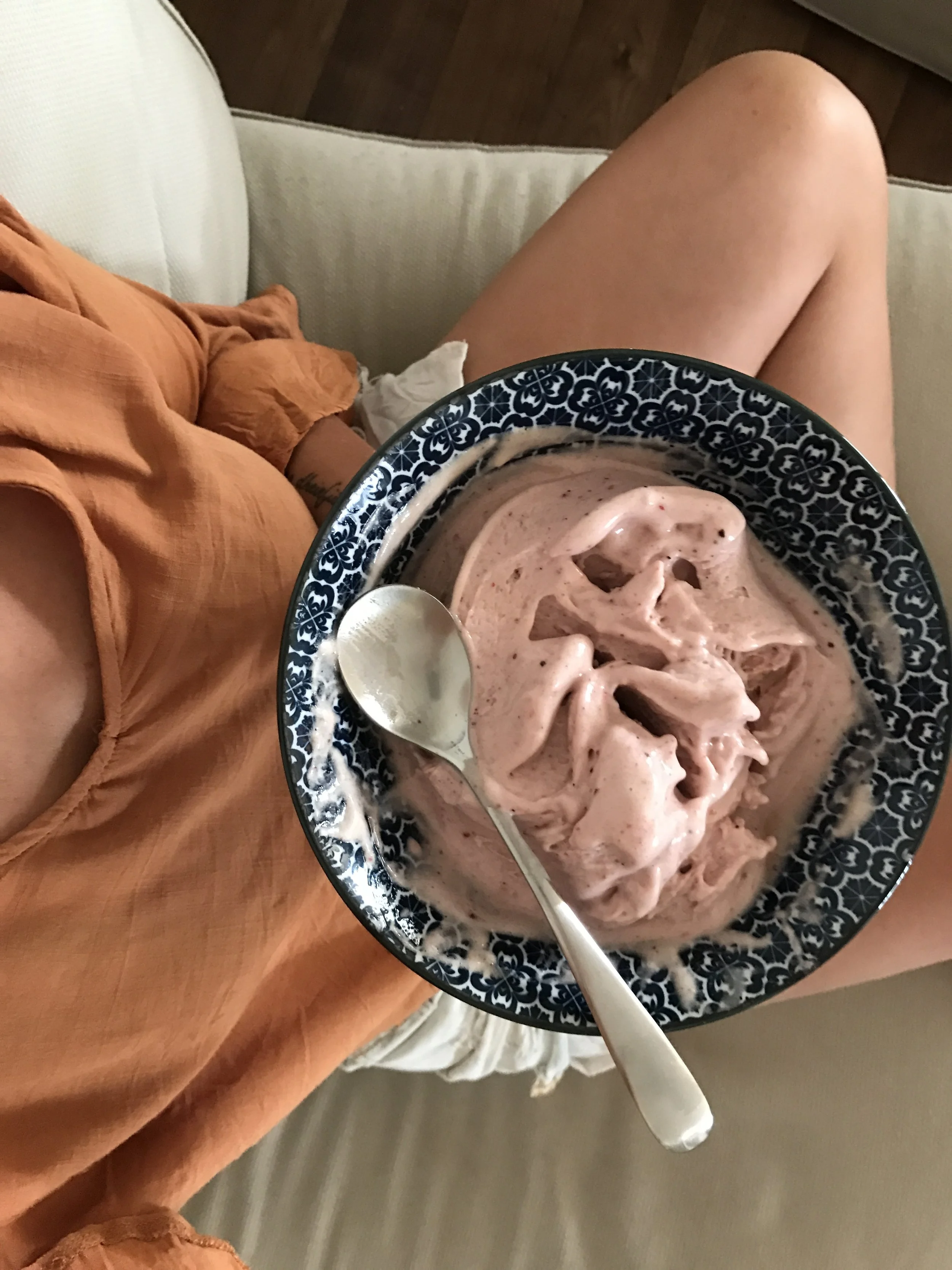 Nicecream - frozen bananas blended into the yummiest, smoothest 'ice cream' consistency. Add Cacao and Peppermint Essential Oil for a Choc-Mint flavour!